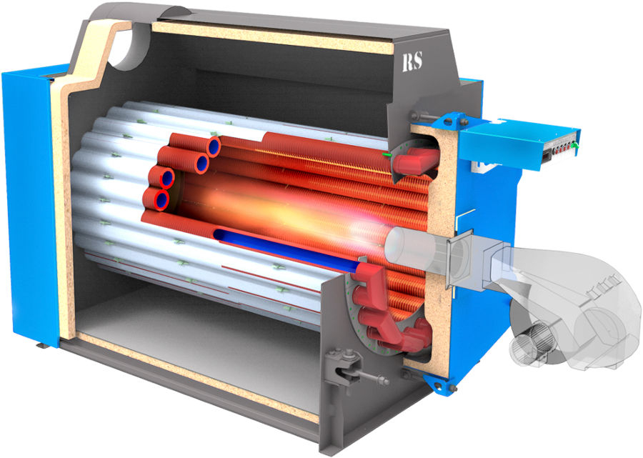 • Котел RSD работает на сжиженном и природном газе, легком дизельном топливе - универсален в топливе;